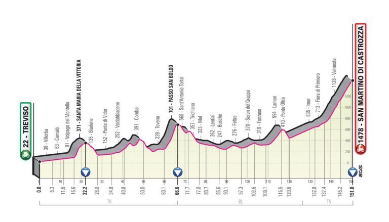 19ª etapa: Treviso - San Martino di Castrozza, 151 kilómetros