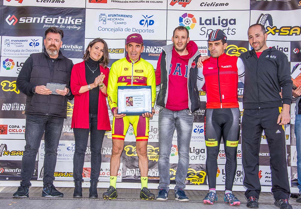 Al finalizar la prueba la concejala de Deportes y Juventud, Iris Álvarez; el concejal de Nuevas Tecnologías, Daniel Romero; y los organizadores, Carlos Gómez Feito e Iván Martínez, entregaron una placa en reconocimiento a la trayectoria ciclocrossista de José Simaes y otra de agradecimiento por su colaboración en los siete años del evento a Iván Damiani. Los Concejales y el coordinador de Deportes de Mejorada del Campo, Pablo Sancha; junto a los organizadores, entregaron los trofeos a los ganadores e invistieron los maillots de la Copa de la Comunidad de Madrid-Bioracer.