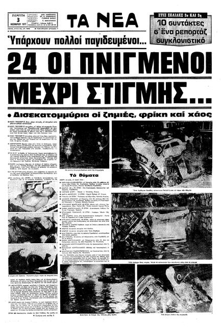 Και τον Νοέμβριο του 1961 η καταιγίδα που σάρωσε την Αθήνα άφησε πίσω της σαράντα εφτά νεκρούς και τρεις χιλιάδες άστεγους.