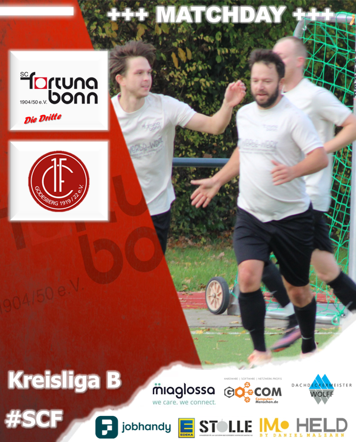 Eine Niederlage und ein Unentschieden stehen bisher in der Rückrunde auf dem Papier. Auch wenn man mit dem 1. FC Godesberg einen starken Gegner, der noch ins Meisterschaftsrennen eingreifen will, zu Gast hat, wollen unsere Jungs unbedingt den ersten Dreier in der Rückrunde holen. Vor allem auch nachdem man am vergangenen Sonntag nur ein paar Minütchen vom Sieg entfernt war. Im Hinspiel verlor man mit 1:4 deutlich. Auch unsere Dritte hat da also noch etwas gutzumachen.