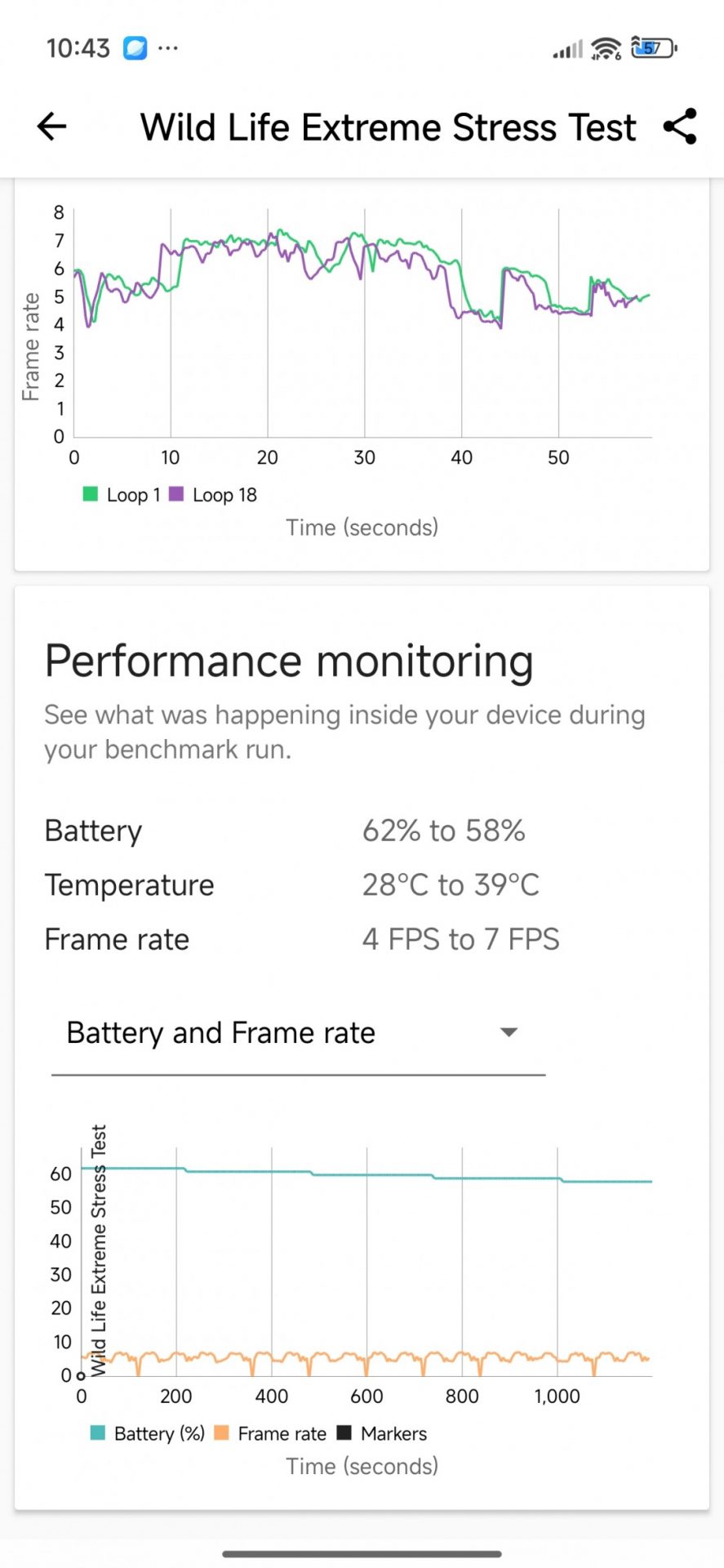 Еще одной сильной стороной является автономность: кремний-углеродный аккумулятор емкостью 6580 мАч обеспечил весьма достойный результат — около 15,5 часов активного использования, а зарядки мощностью 45 Вт вполне достаточно. Производительность находится ровно посередине среднего сегмента: Dimensity 7400 Ultra не бьет рекорды в бенчмарках, но телефон работает плавно в повседневных задачах, не перегревается и демонстрирует отличную стабильность.