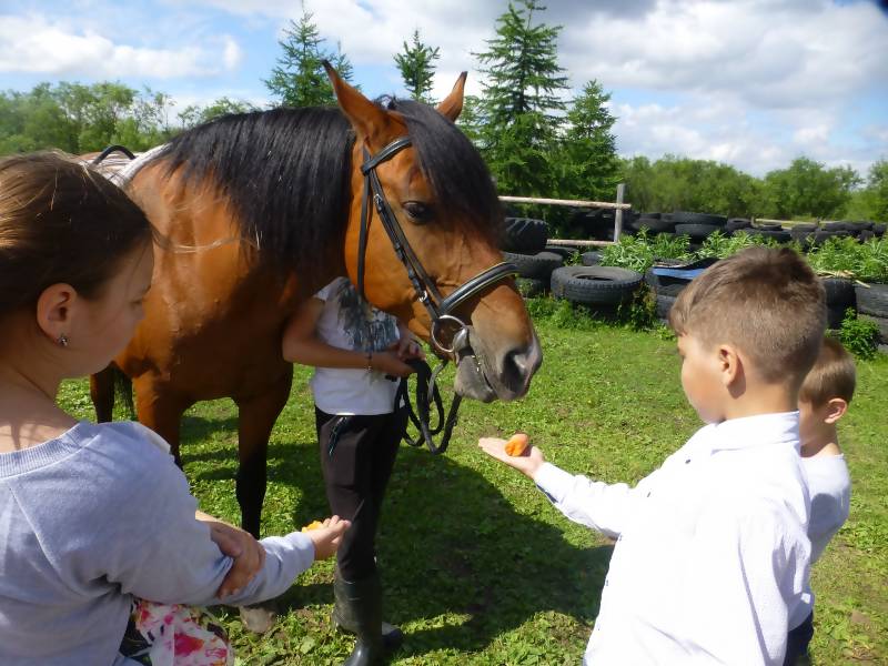 Вчера в «Клубе любителей лошадей», расположенном на острове Краснофлотский, побывали маленькие горожане – участники проекта «Воспитание гражданина». В летние каникулы для ребят была организована встреча с этими умными и добрыми животными.