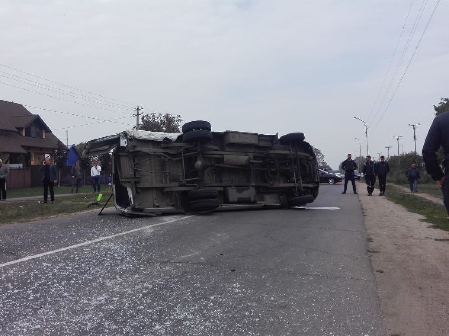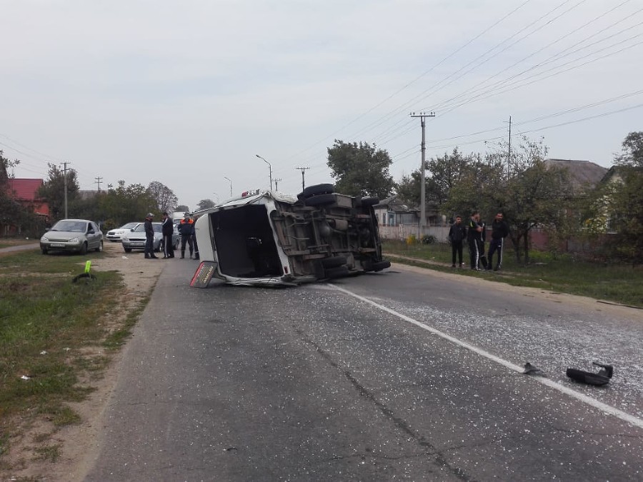 В Курганинске в ДТП перевернулся микроавтобус с десятью пассажирами
