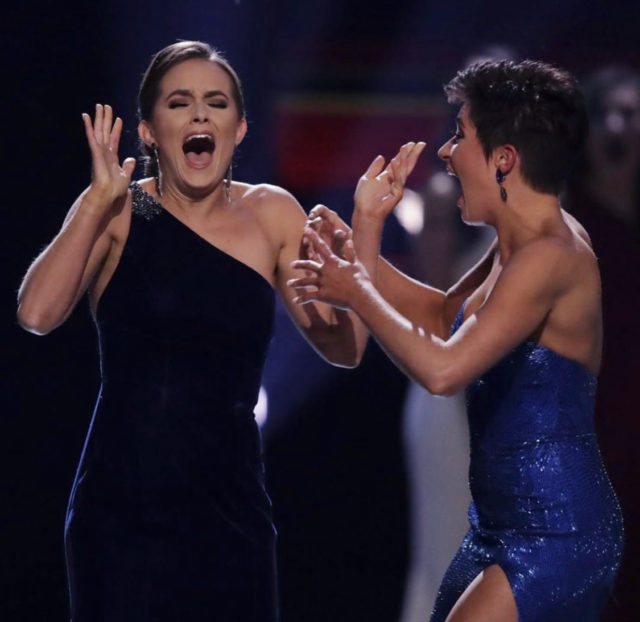 Кстати, победила Шриер благодаря эффектному номеру в конкурсе талантов. Она провела химические эксперименты с разноцветными колбами. «Спасибо, что вы перестали фокусироваться на наших телах и дали шанс получить признание за наш ум, нашу личность, наши устремления», — сказала Шриер на церемонии. А еще отметим, что впервые за 97 лет в программе «Мисс Америка» убрали дефиле в купальниках!