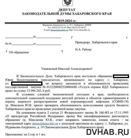 Депутат привлёк прокуратуру для проверки трат на и.о.губернатора Хабаровского края Дегтярёва