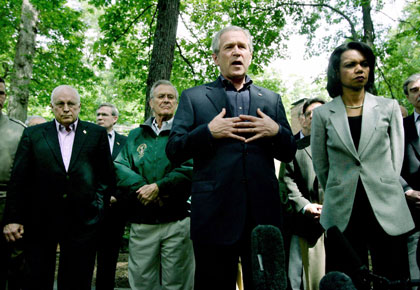 In September 2000, an advocacy group called "Project for New American Century," led by Jeb Bush, Dick Cheney, Donald Rumsfeld, Paul Wolfowitz and others -- published a "blueprint" for "transforming" America's future. PNAC acknowledged that the "revolutionary" changes it envisaged could take decades to bring about -- unless, they said, the United States was struck by "some catastrophic and catalyzing event – like a new Pearl Harbor."