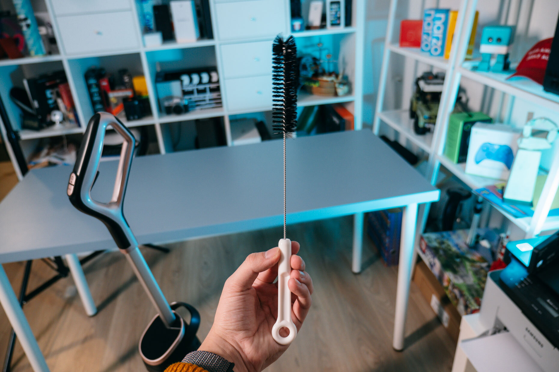 Начнем с распаковки, но, скажу сразу, задерживаться тут мы не будем, ведь в коробке ILIFE EASINE W100 лежит только набор из двух аксессуаров для очистки: ёршика и небольшой 10-сантиметровой щетки. К сожалению, дополнительных насадок для пылесоса в комплекте нет — вполне возможно, это вынужденный шаг ввиду конструкции устройства, о которой я расскажу далее.