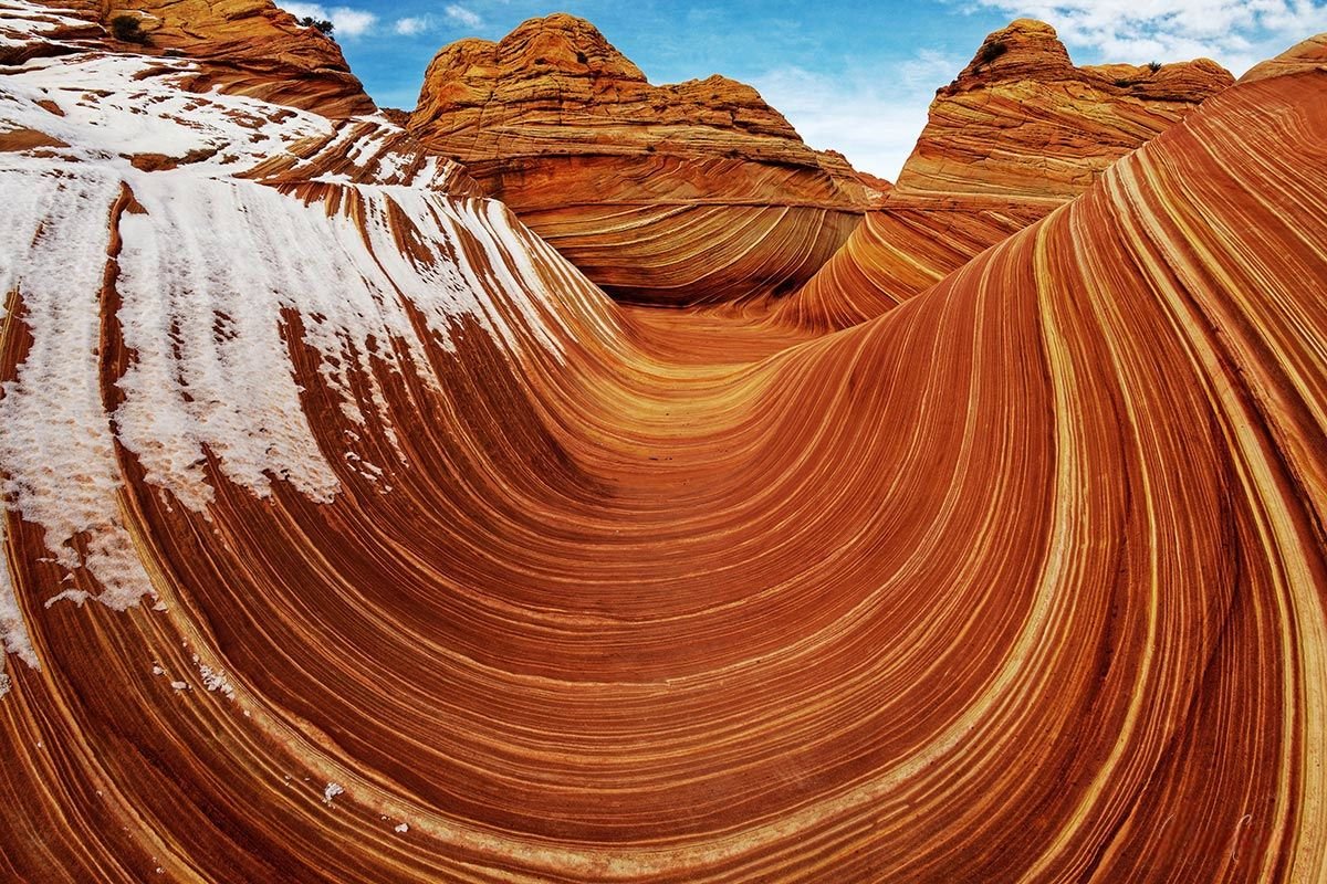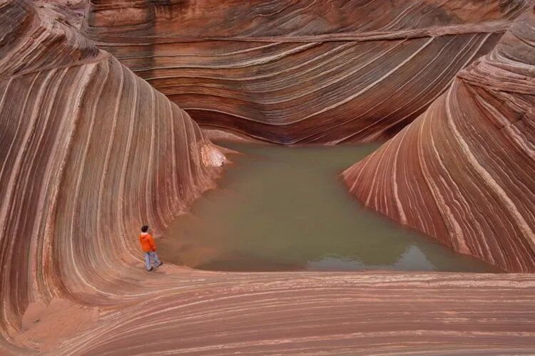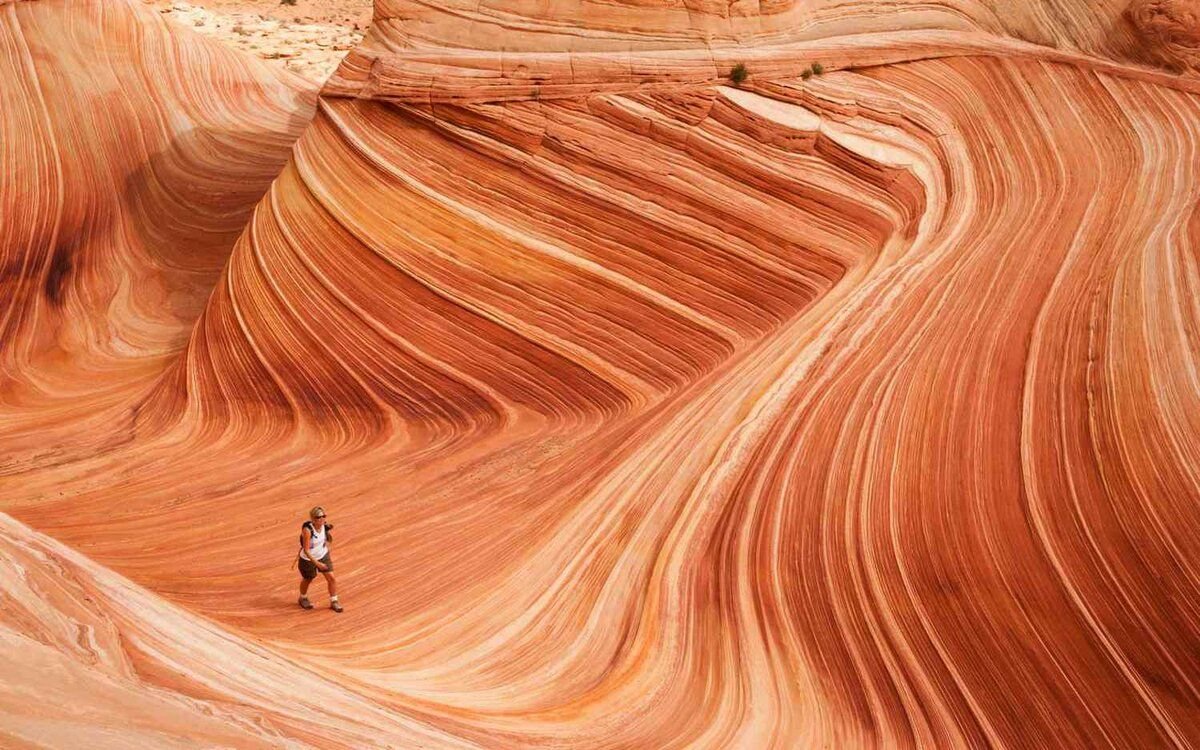 Находится эта формация в США, на границе двух штатов — Юты и Аризоны, в крайне труднодоступном месте на высоте в 1600 метров над уровнем моря. Волна состоит из песчаных дюн, которые древнее море, высокая температура и ветер превратили в затвердевшие желоба. Ученые считают, что этот каньон возник около 190 миллионов лет тому назад, когда здесь было мелкое море, по берегам которого гуляли динозавры. Кстати, остатки раковин древних моллюсков можно обнаружить, если внимательно смотреть себе под ноги во время путешествия по Аризонской волне.