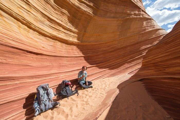 Но дойти до волны еще полдела. Самое сложное — получить разрешение. А сделать это очень непросто, ведь все зависит исключительно от воли случая. Дело в том, что Аризонская волна является памятником природы и находится под охраной государства. И это очень правильное решение. Песчаник, из которого состоят плавные желоба — очень хрупкая формация. Присутствие большого количества людей может просто разрушить все неповторимое очарование этого места. Поэтому Бюро по управлению земельными ресурсами (аналог нашего Минприроды) ограничило доступ туристов к волне. Посетить достопримечательность может только 64 человека в день. Причем, 48 разрешений разыгрываются в онлайн-лотерею за 4 месяца до даты похода. А остальные 16 — тоже в лотерею, но в день доступа. Для этого надо оказаться в административном центре заповедника в 9 утра и надеяться на удачу.
