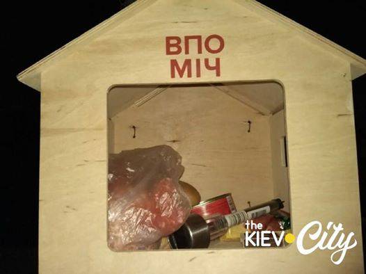 Он пишет: «На фото — кормушка «ВПОмiч», предназначенная для внутренних переселенцев из Донбасса и Крыма. Вы не ослышались: именно кормушка. Их на трамвайных остановках Киева устанавливают креативные и социально ответственные граждане.