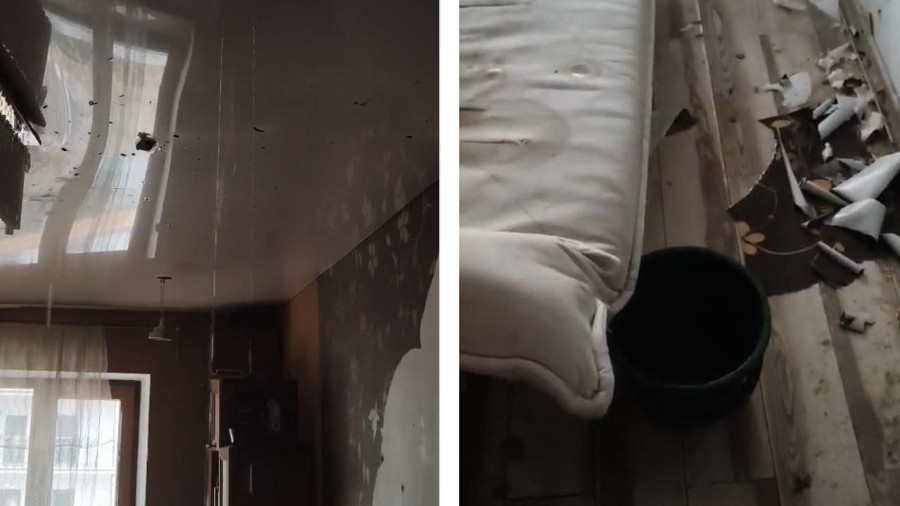 «Вода с потолка ручьем бежит». Пострадавший от атаки беспилотников дом в Новороссийске заливает дождем