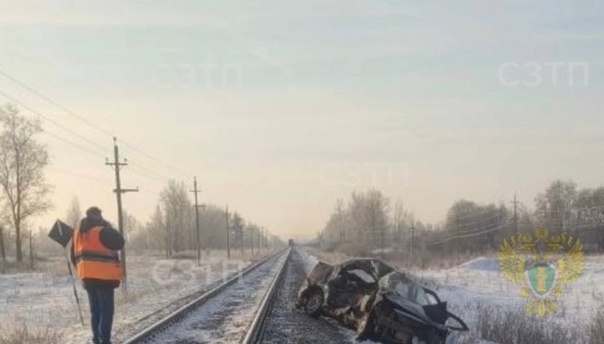 На железнодорожном переезде в Локнянском районе Псковской области произошло ДТП: по предварительным данным, легковой автомобиль выехал на пути перед приближающимся грузовым составом, несмотря на запрещающий сигнал светофора.