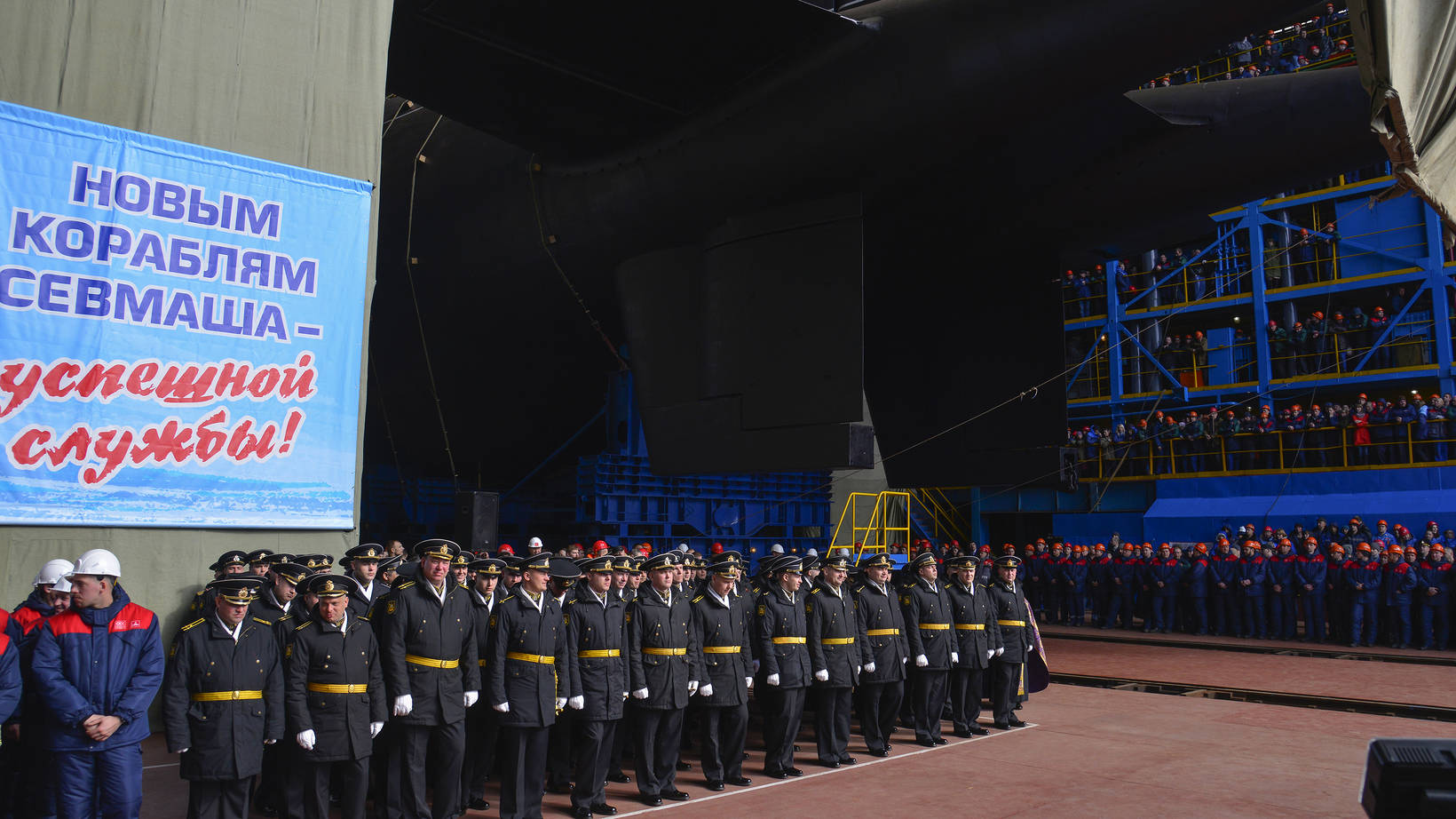 Церемония спуска на воду атомной подводной лодки «Белгород»