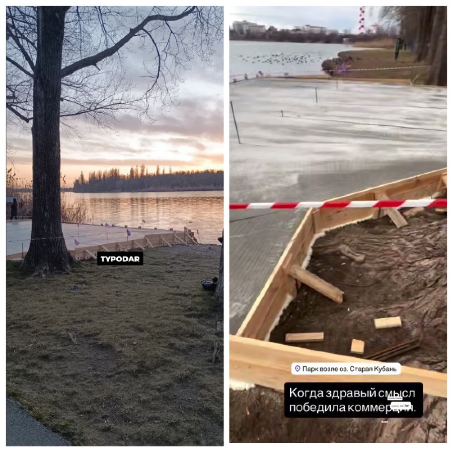 «Был тихий уголок, там зимуют птицы». В Краснодаре на ГМР забетонировали участок парка «Старая Кубань»